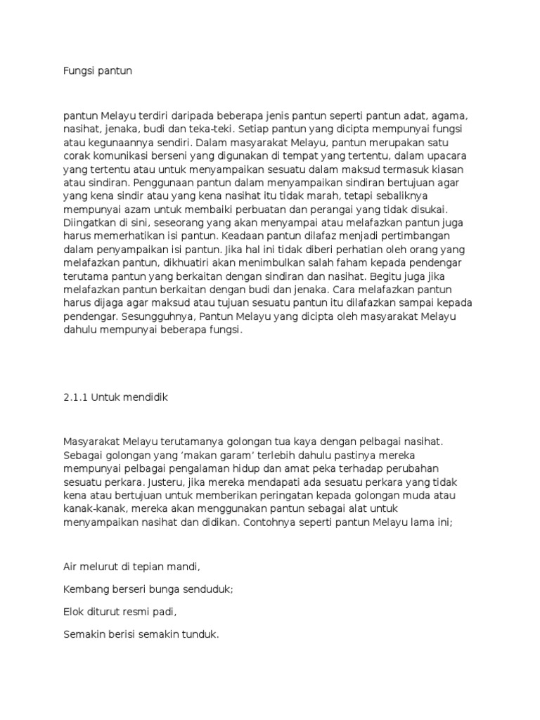 Fungsi Pantun Dalam Masyarakat Melayu Tradisional Pdf
