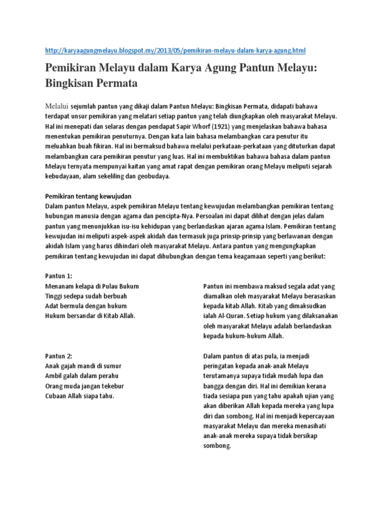 Pdf Akal Budi Dan Cerminan Jati Diri Melayu Dalam Pantun