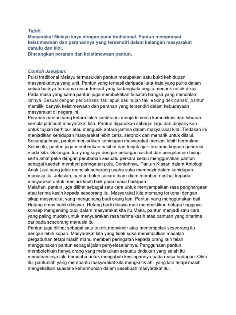 Karangan Peranan Dan Keistimewaan Pantun Dalam Masyarakat Kita Pdf