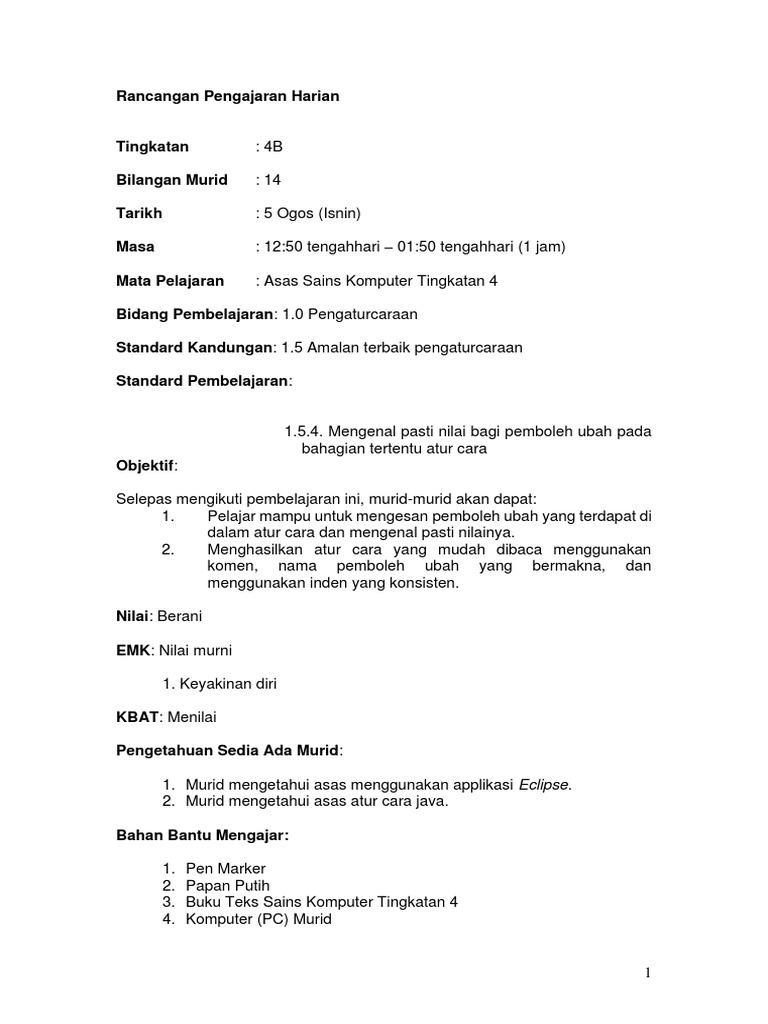 11 Asas Pemikiran Komputasional Kandungan Standard. Penyusunan sub topik daripada mudah ke sukar membolehkan murid menguasai pengetahuan dan kemahiran yang disampaikan dengan mudah dan jelas. Contoh lengkap rph sains tingkatan 2 kssm.